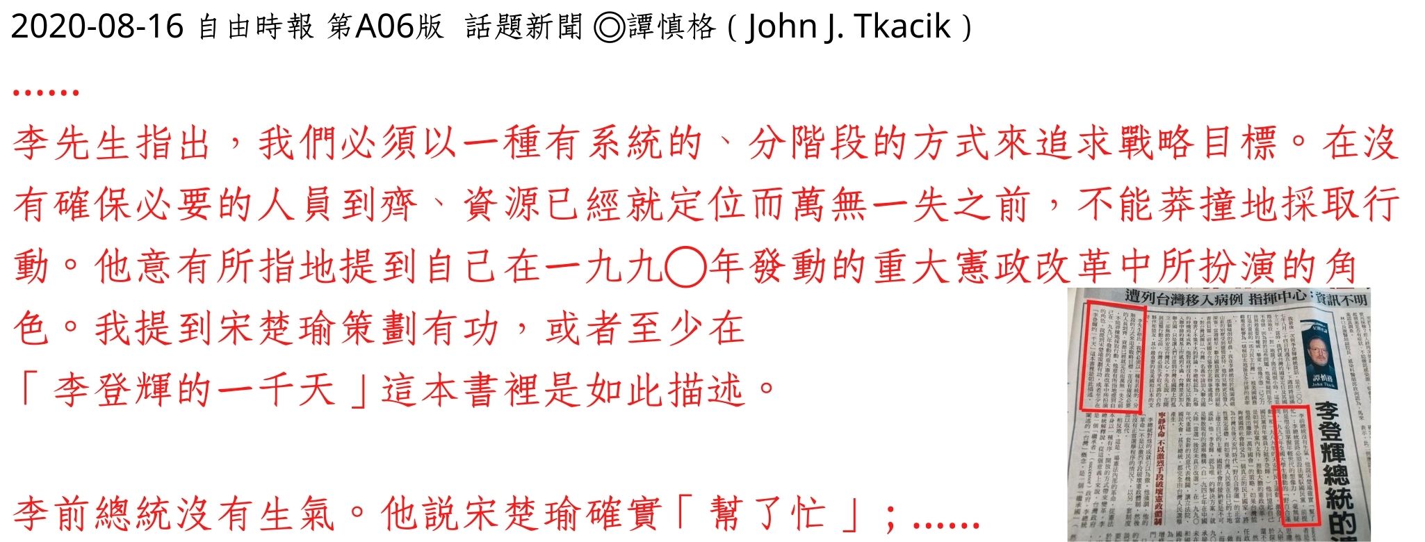 2020-08-16【星期專論》李登輝總統的遺產:民主與國家地位】