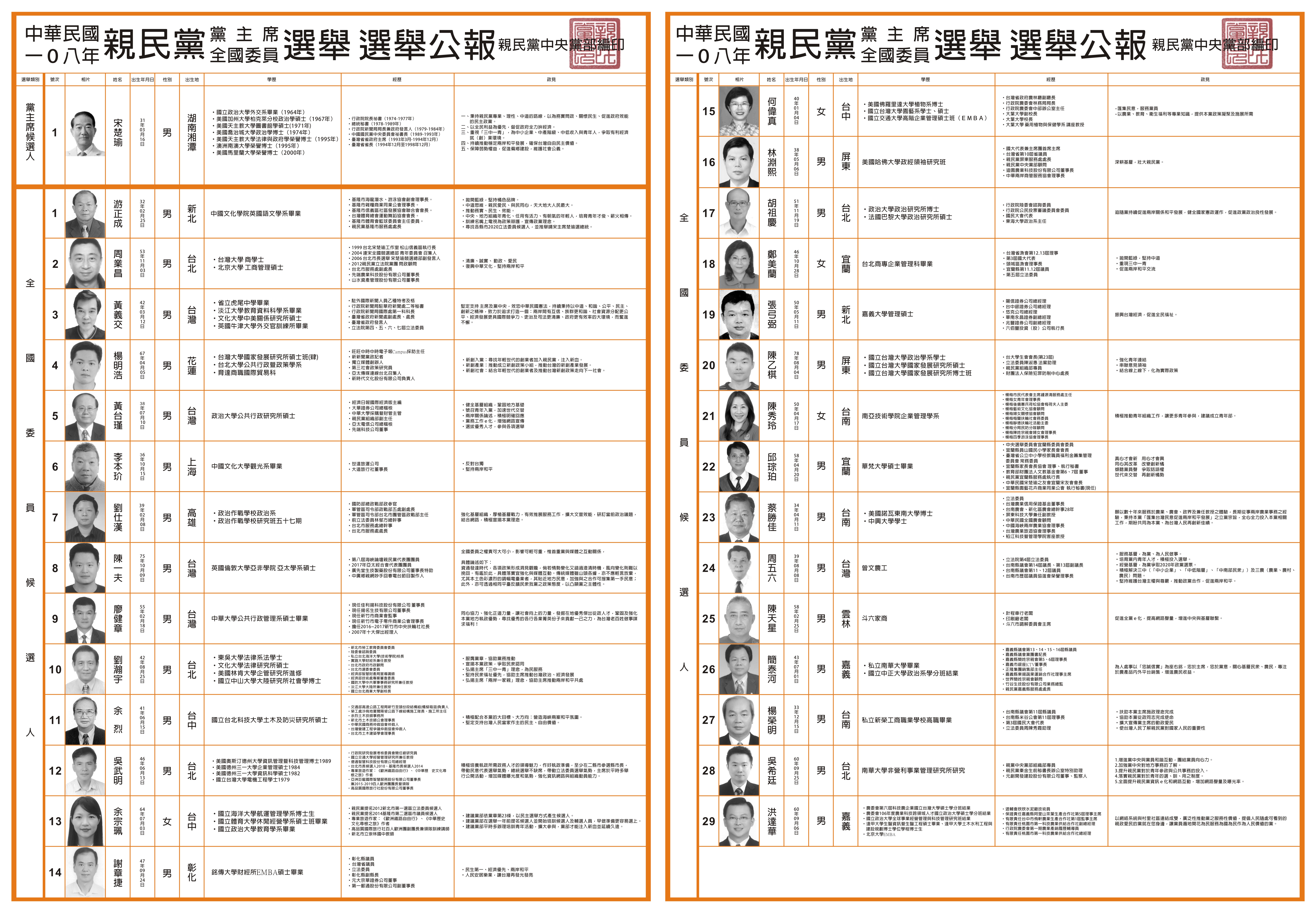 首頁 > 親民新聞館 > 最新消息不公開 > 108年親民黨黨主席/全國委員選舉 選舉公報