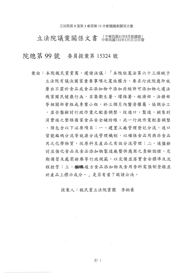 > 2013-06-03 院總第99 號委員提案第15324 號