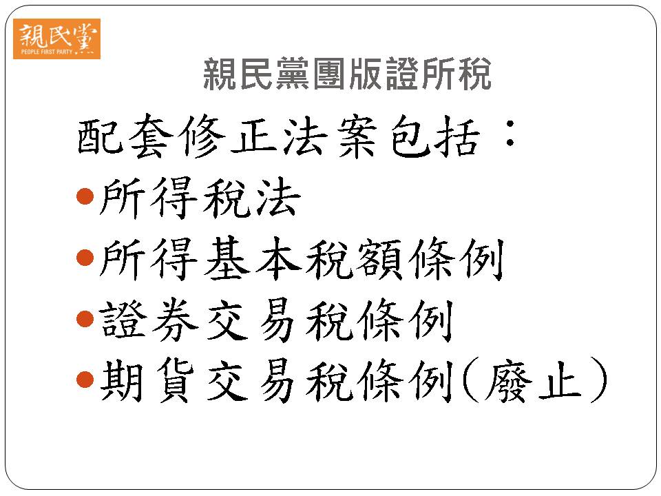 > 2012-06-04 親民黨團版證所稅 提案說明