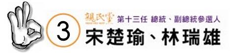 2011-12-26 宋楚瑜、林瑞雄 選前南-北-中大型造勢活動 1/7-11-13 呼朋引伴 共襄盛舉 抛開藍綠 致力民生 掌握關鍵四年 呼朋引伴 中間選民站出來 共襄盛舉 101年 1月 7日(六) 台南 18:30 海安路與和緯路口(花園夜市對面廣場) 101年 1月11日(三) 台北 18:30 (台北228公園音樂台) 101年 1月13日(五) 台中 18:30 (廣兼停95;圓滿戶外劇場旁) 台中市向上路2段與惠文路口
