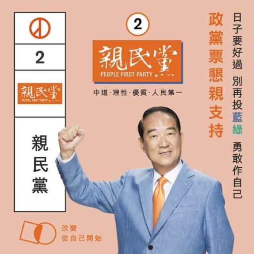 2015-12-24 小宋主席最新電視形象廣告 台灣需要第三種選擇,破解藍綠迷信,放下政黨對立,就從我們這一票開始。 相信自己,選擇能力,不要依民調(ㄊ一ㄠˊ)投票,勇敢作自己。 政黨投② 總統③ 台灣勝利換新衫