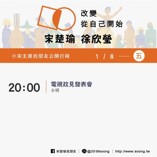 20:00 電視政見發表會 地點:台視(台北市松山區八德路三段十號)