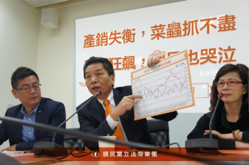 產銷失衡,其實是消費者和農民雙輸;民生物價的穩定,才是大有為政府該有的作為。面對這波遭受天候異常因素,導致農產品蔬果價格異常飆高的不正常現象,立法院親民黨黨團今天(13日)召開記者會指出,在此政權轉移期間,政府仍應控制好物價,農政單位不能單單以「天候異常加上連續降雨」為由,不積極清查是否有菜蟲介入、人謀不臧,或是出口計畫不當造成價格的不正常上揚。現場並請來蕉農業者代表,說出基層農民心聲。