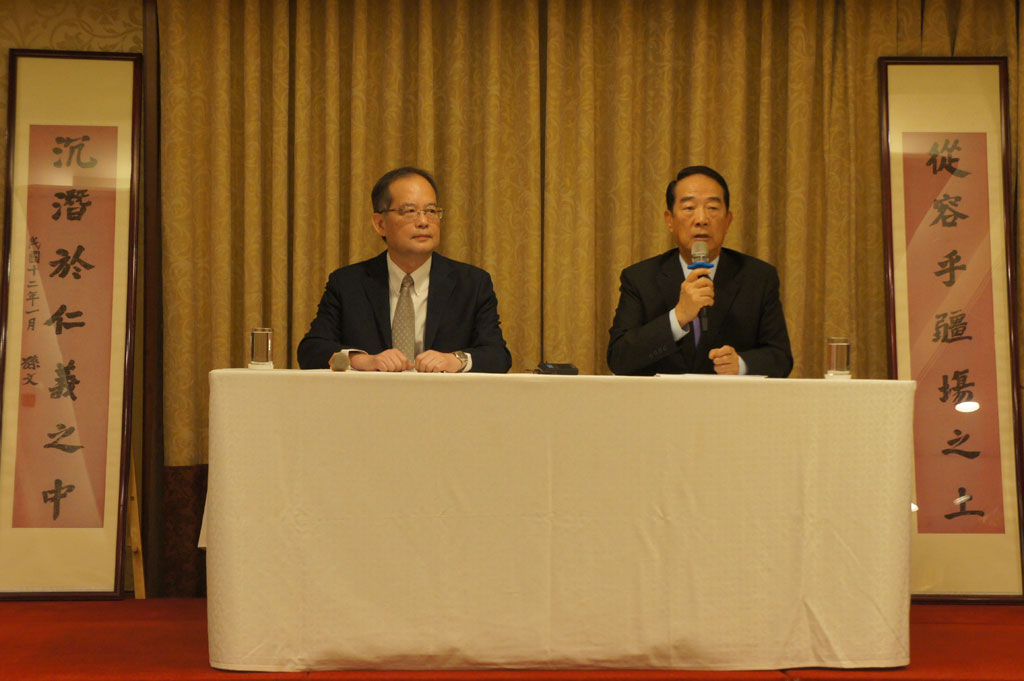 宋主席在會中,也以一副對聯表達他的心情。在滿清太平天國的那段時間,有位湖南前輩彭玉麟將軍,登泰山時寫下一個對子,上聯「我本楚狂人,五岳尋仙不辭遠」---「我本是一個湖南人,一輩子到處追求政治上的大道理,跑過名山大澤,五岳尋仙都不辭遠」。下聯是「地猶鄹(同鄒)氏邑,萬方多難此登臨」,就像台灣現在的情況,不管在兩岸關係、政治制度或經濟發展,真是萬方多難!所以,希望透過國際的經濟交往,展現出我們是有尊嚴的台灣人。宋主席還展示當年掛在省長辦公室的國父孫中山先生的墨寶真跡:「從容乎疆場之上,沉潛於仁義之中」,他強調,他會以從容的態度,展現台灣奮鬥的基本精神,讓世界不會漠視台灣,甚至誤解台灣。另外,展現出我們追求的就是仁和義,我們願意跟全世界和平往來,更願意跟大陸同胞彼此相親相愛,共同創造亞太地區真正的安定繁榮。