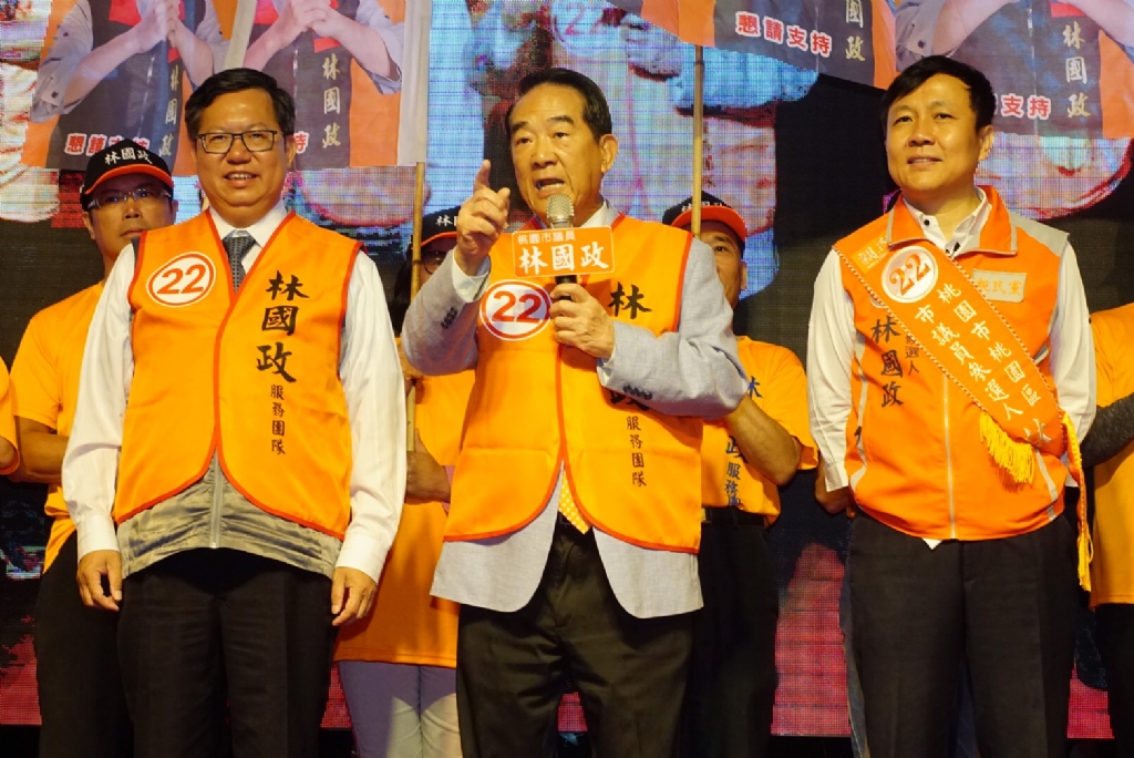 親民黨主席宋楚瑜今天上午出席桃園市桃園區議員候選人林國政競選總部成立大會,為林國政披上競選綵帶及戰袍。宋主席勉勵林國政繼續秉持從政熱誠,盡心為民服務。桃園市長鄭文燦也到場祝賀,並與宋主席聯袂進場,受到現場民眾熱烈歡迎。宋主席表示,今天是難得一見的場面,看到鄭市長特地幫林國政加油打氣, 彰顯的是「放下藍綠」, 不是為政黨的利益,而是真正為台灣、為鄉親、為桃園的未來發展共同努力。