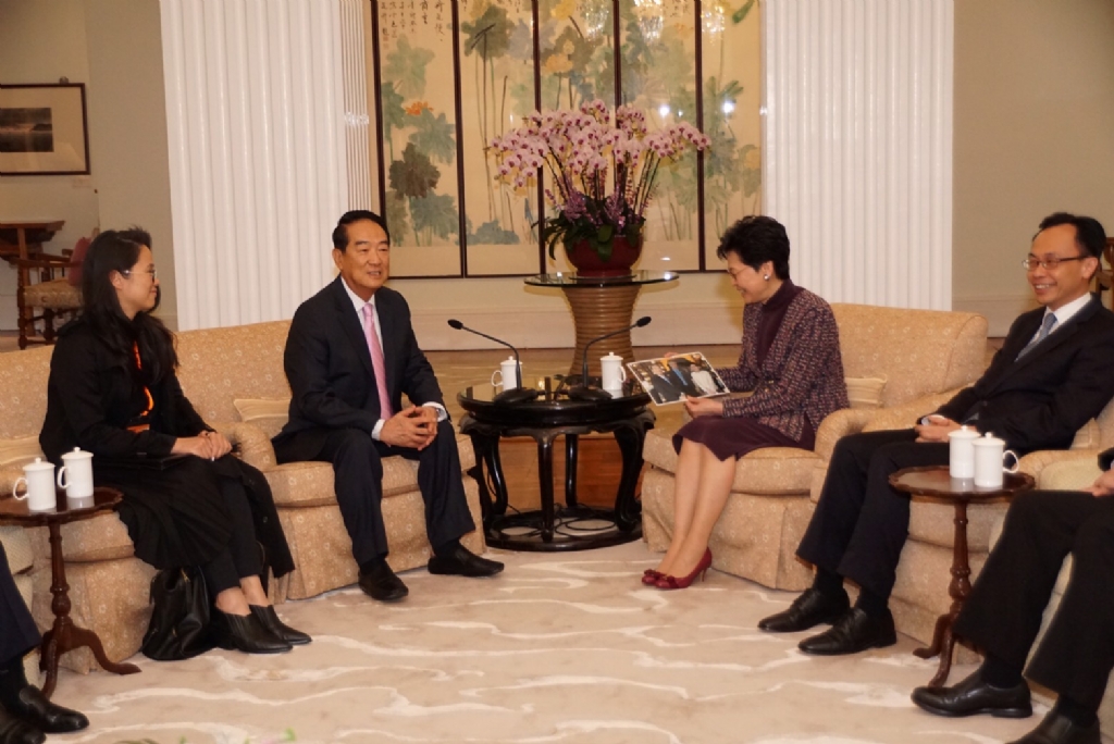 宋主席表示,他和林鄭月娥是舊識 ,在APEC領袖會議中,與她有多次互動。他會把上午參觀展城館,以及與聶局長座談的心得與她分享。宋主席今天還會送給林鄭月娥ㄧ張照片,是參加APEC領袖會議時,他與林鄭月娥以及新加總理李顯龍三人的合照。