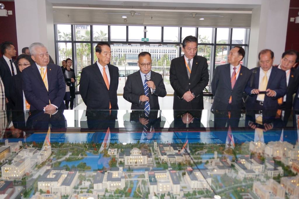 宋主席向崔世安先生提到,看到澳門這幾年觀光人口持續增加,每年超過3000萬名旅客,幾乎快超過日本,顯示澳門的潛力無窮。更讓人敬佩的是,看到澳門大學在人才訓練方面做了很多努力,不管是硬體建設、師資提升或課程,都有長遠的規劃。宋主席建議,未來大灣區的經濟發展建設,很重要的一環是人才培養與經驗整合,因為包含港、澳以及廣東省九個重鎮,過去在處理外商投資方面有不同的行政程序,澳門大學正好可以提供一訓練整合的場所及平台。