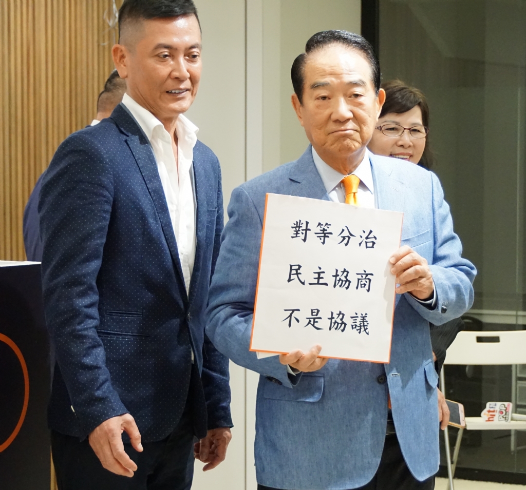 (3)宋楚瑜主席與親民黨在兩岸關係上的立場一貫且堅定,自始便不曾改變﹗宋主席與親民黨的兩岸主張,我們堅信是符合絕大多數台灣百姓利益、更是穩定兩岸和平發展的重要基礎,未來也會是宋主席及親民黨持續的堅持。因此,堅持台灣民主自由價值,維護目前的自由、民主、生活方式,保護中華民國的立場從未動搖,堅持台灣人民當家作主,更是從2000年參選以來未曾改變的立場,絕不妥協、從未亦絕不同意以香港模式定位兩岸關係。因此,我們再次重申此行與對兩岸關係的主張,「兩岸一中,對等分治」是目前台灣可以達成與對岸和平相處可行的方案。大陸既提出探索方案,民主協商是唯一兩岸可以坐下來溝通的方式,各黨各派都可以有權利表示自己的主張,協商只是過程,而不是已經達成協議。達成「協議」也必須經過二個民主程序:有公權力的政府授權參與,有代表民意的權力機制,立法院討論監督。最後必要時甚或要民意通過。