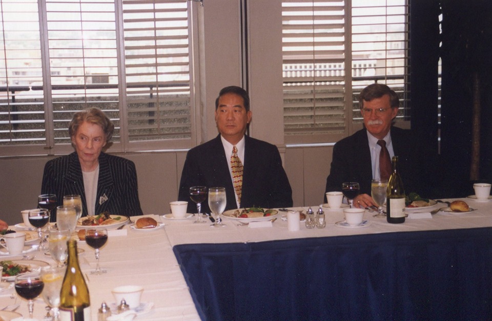 另值得一提的是,我的老師寇克派翠克女士退休後,在華府仍有許多舊識,2000年,她又介紹AEI(美國企業研究院)的波頓副主席與我會談,留下這張珍貴的照片。幾年後,波頓也接任了美國駐聯合國大使。