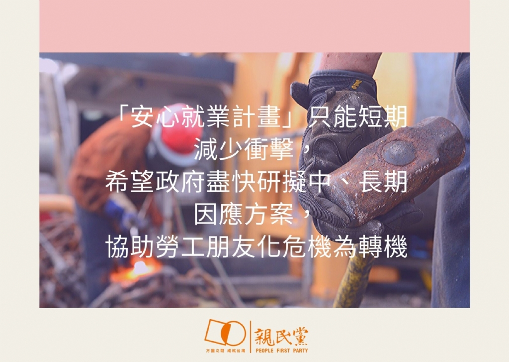 不過,這仍只是應付短期衝擊之法,面對疫情暫時看不到結束的時間點,台灣廣大勞工朋友的生計問題還是令人不安,親民黨呼籲政府應盡快研擬中、長期因應方案,協助勞工朋友化危機為轉機。