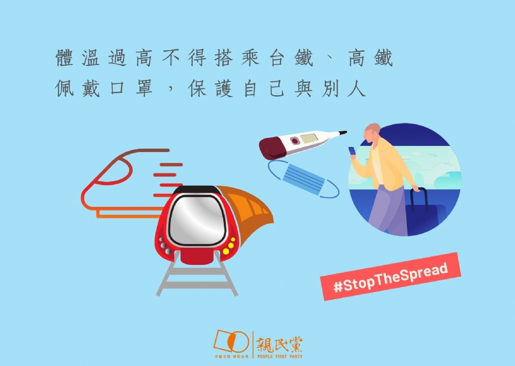 親民黨提醒旅客,盡量提早抵達車站,配合量測體溫,避免人潮過多,影響您搭車時間。也提醒您您,請佩戴口罩搭乘大眾運輸工具,保護自己,也保護別人。