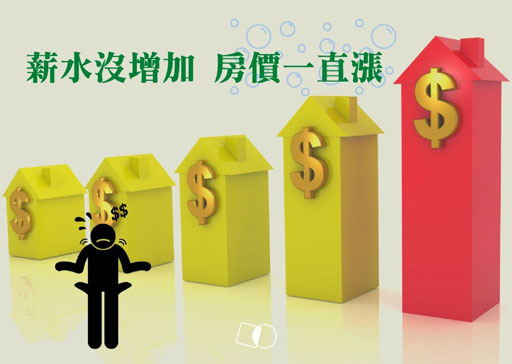 房市興盛雖然帶來很多經濟活動,有正面效益;但不能忽略可能帶來的負面作用。因為如果房價一直漲,但民眾薪資所得沒有同步提升下,如果咬牙買房,背負沉重貸款,將會排擠其他消費,進而不利於總體經濟。其次,年輕人買不起房,也會有相對剝奪感,甚至造成世代對立。最怕是等到房價高不可攀時,屆時,政府花再多力氣與資源,恐都難再回復正常了。
