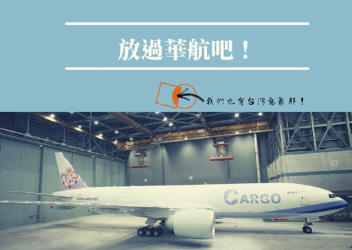 為了民進黨立委日前在立法院通過決議,要求華航「重新設計飛機塗裝,加強『TAIWAN』或台灣意象設計」,華航在新購777貨機上展現「全新塗裝」,頭部兩側的大大英文字「CARGO」(貨物)的C字裡,鑲入台灣地圖形狀,把「CHINA AIRLINES」英文字縮小放在機尾。未料,新設計卻引發不少批評,仍嫌「台灣辨識度不足」。