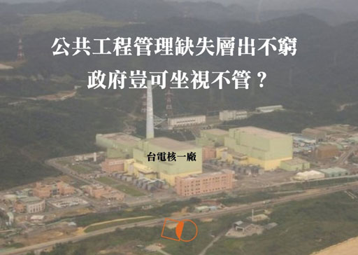 正當各界忙著檢討台鐵工地管理問題之際,又驚傳「核一廠挖破冷卻水管,北台灣險陷核災風險」遭隱匿的重大工安事故。國人錯愕之餘,不禁要問,政府公共工程究竟還有多少未爆彈?施工品質是賭運氣?出事就先隱瞞?事後究責不了了之?顯見政府對公共工程管理不善已非單一個案,而是系統性問題,政府應拿出態度重新調整結構體制,不能再流於紙上談兵。
