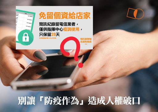 「簡訊實聯制」是重要的科技防疫措施,但因涉及民眾隱私權,政府必須謹守限定疫調的目的,才能在人權與防疫間維持衡平性。