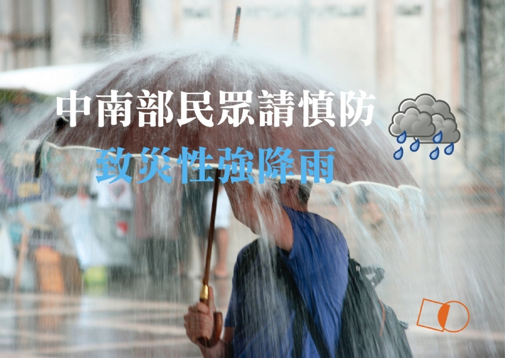 【中南部民眾請慎防致災性強降雨!】