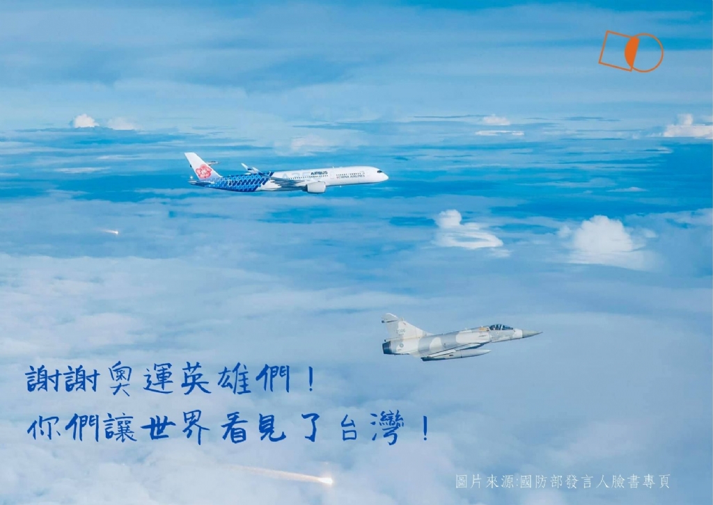然而國防部此舉引起外界正反議論,有人認為戰機伴飛有其目的及準則依據,例如元首出訪及敵機擾台,尤其近來空軍為偵巡、維護台海空域安全頻出任務,應讓空軍專注本務戰備訓練;也有人認為,台灣選手東奧表現優異,出動戰機迎接合情合理。我們認為,為彰顯運動國手榮耀國家所付出的辛苦努力,讓世界看見台灣,建議戰機伴飛迎接奧運選手應予「法制化」,循正式體制建立制度與編列相關預算。而非誰說了算,也非有想到就飛,沒想到就不飛。