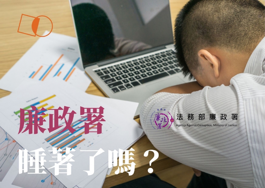 為展現政府打擊貪腐決心,回應民眾期盼,落實「聯合國反貪腐公約」之各項反貪腐措施,我國於99年7月20日設置「法務部廉政署」,專責執行反貪、防貪及肅貪業務,然而最近發生幾件公務機關的大事,卻不見廉政署積極查處的蹤影,讓民眾不禁懷疑,難道廉政署睡著了嗎?