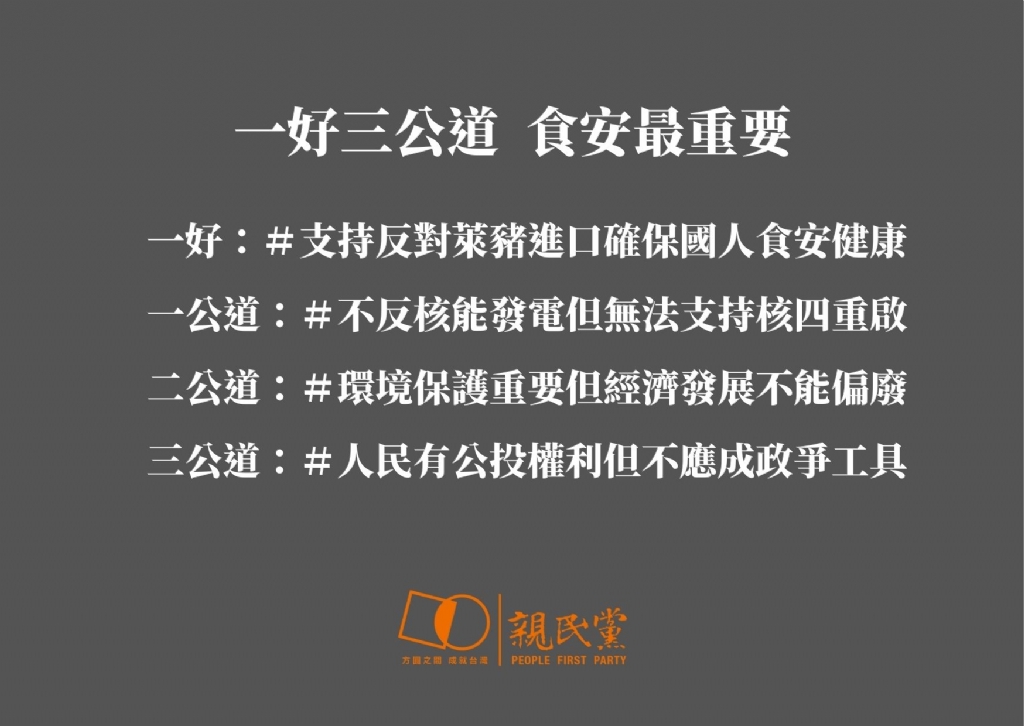 總結來說,我們強調「一好三公道,食安最重要」,就是建議大家對「反萊豬公投」,在12月18日可投下同意票,至於其他三項公投案,我們認為皆無法以簡單「二選一」的方式來處理。因此,我們針對這三項公投案說出我們的公道話,要不要投票或投同意還是不同意票,則由鄉親自己最後作決定。