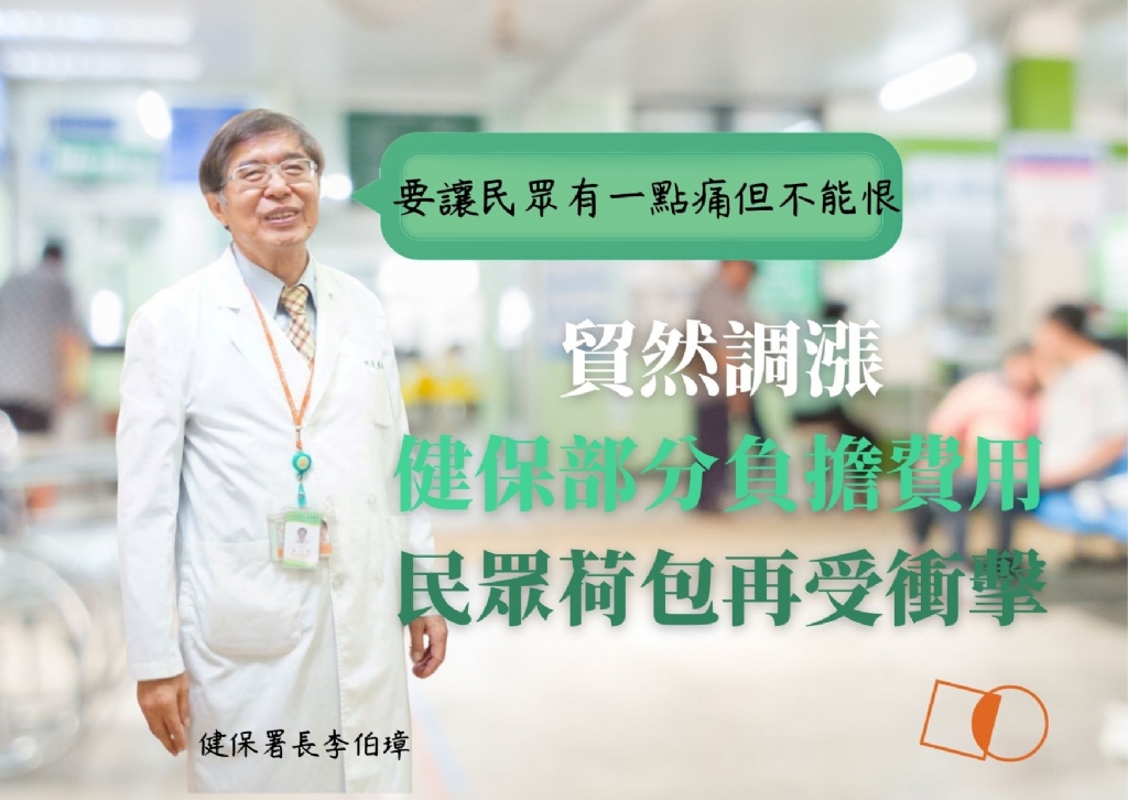 【貿然調漲健保部分負擔費用,民眾荷包再受衝擊!】