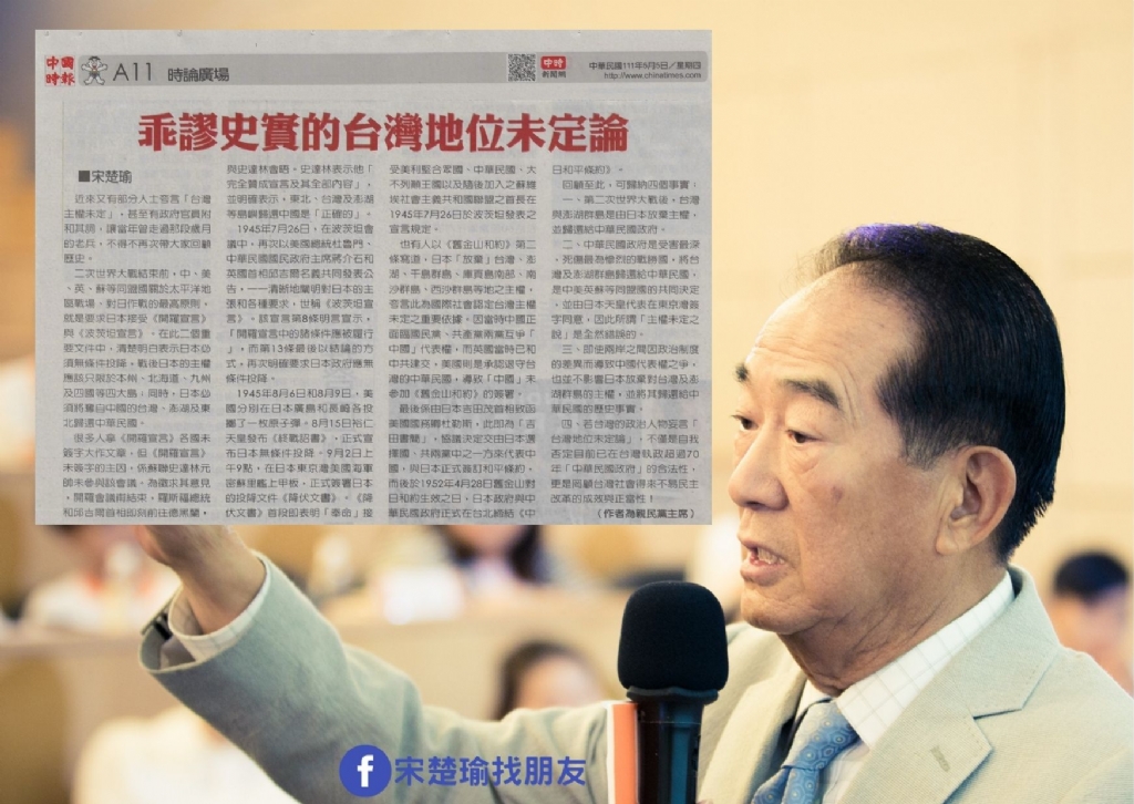 【乖謬史實的台灣地位未定論】 --親民黨主席宋楚瑜