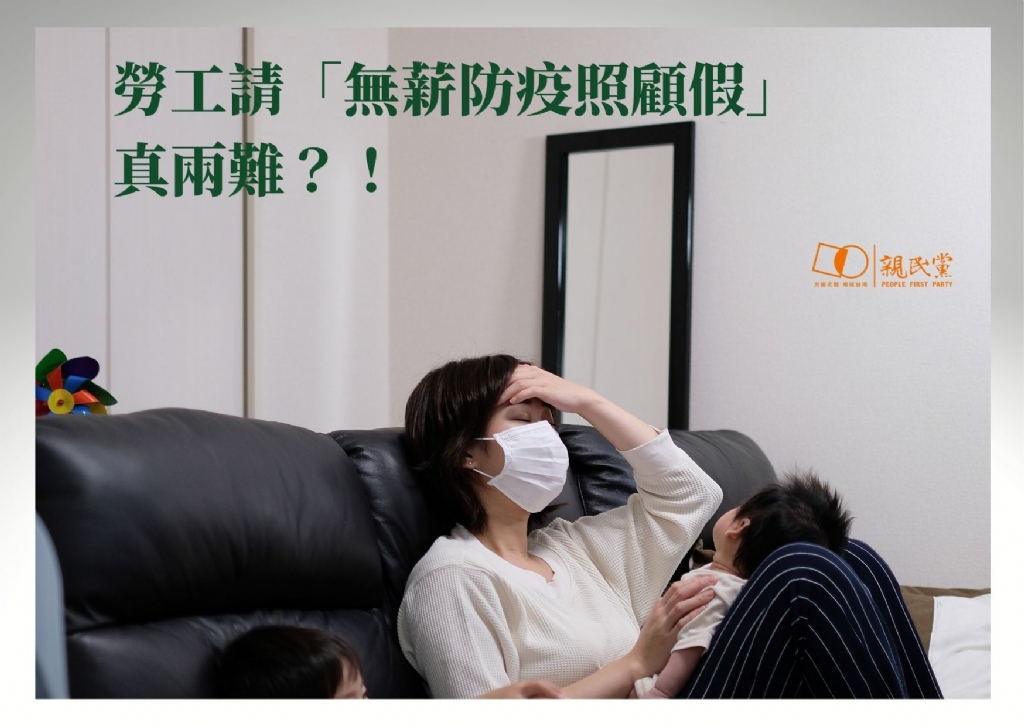 依照勞動部現行法規與函釋,確診者可請「普通傷病假」,可請領「勞保傷病給付」。居隔者在居家隔離期間可請「防疫隔離假」,可請領每日1,000元「防疫補償金」,但自主防疫期間只能請自己的「病假、事假、特休假」。至於家有小孩需要照顧時,家長可請「防疫照顧假」,但因疫情無法歸責於雇主,因此不強制雇主支薪,勞工是沒有薪水可領的;若選擇「家庭照顧假(1年7天)」,薪資計算依事假規定,但事假也是不給薪的。因此呼籲政府苦民所苦,給予「防疫照顧假」實質薪資補貼,並擴大適用對象,不侷限於照顧12歲以下兒童,才能讓勞工朋友們更安心照顧因疫情所需的家人們。