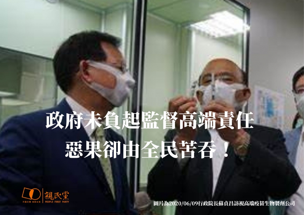 審計部查核報告近日揭露高端疫苗有五大缺失,包含:高端多次延遲交貨逾30天,衛福部卻不罰違約金、未確實推估國人需求,導致疫苗過期銷毀、疫苗採購不透明公開,還以「密件」封存疫苗採購合約30年。顯見政府在處理高端疫苗採購問題時,內控把關機制和嚴格審核制度完全失靈,今天如果不是審計部查帳,高端違約開罰與加重處罰恐怕還是遙遙無期。