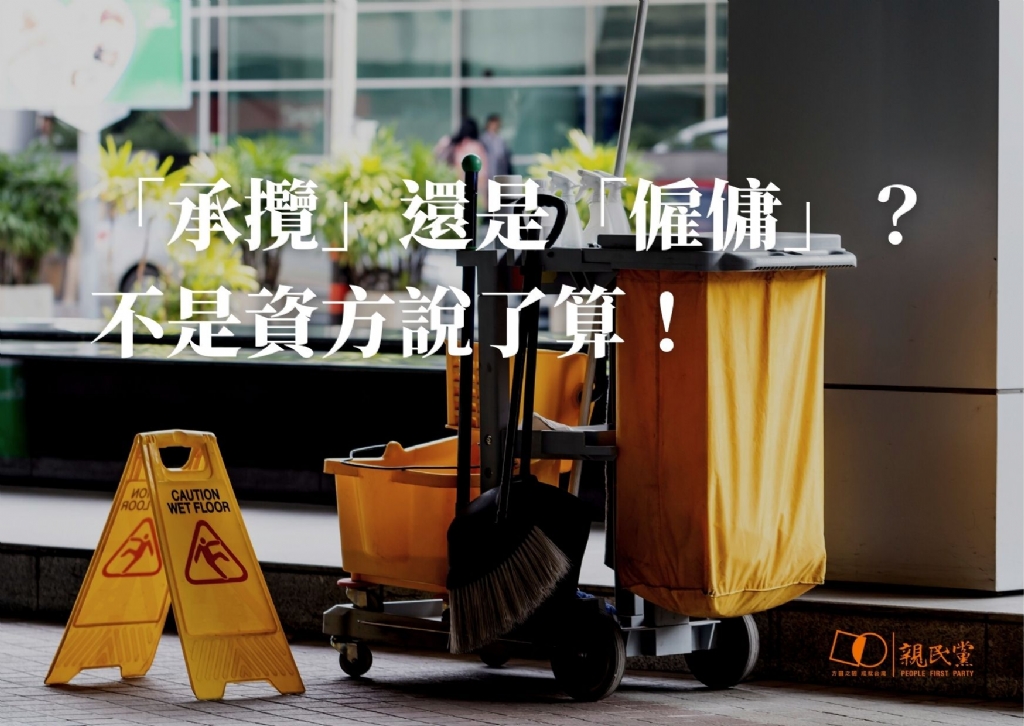 近日國內知名網路書店涉及「假承攬、真僱傭」,一名不識字的清潔阿姨在該公司工作二十年,沒有勞、健保,也沒有勞退金,近期更無故遭解僱?消息曝光後,引爆民眾怒火,紛紛留言抵制。該公司才火速將總經理調離現職,並與清潔阿姨進行和解。但是我們更憂心的是,在其他社會角落,還有多少長期遭資方壓榨,卻得不到合理的報酬與權益?