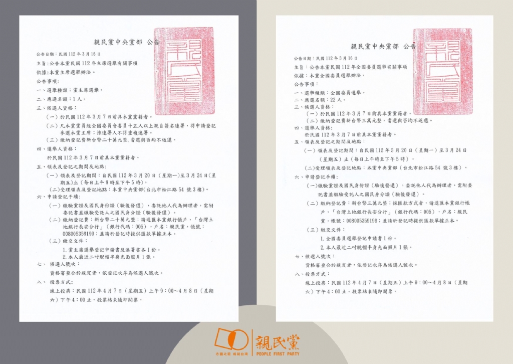 2023-03-16【公告112年親民黨黨主席暨全國委員選舉】