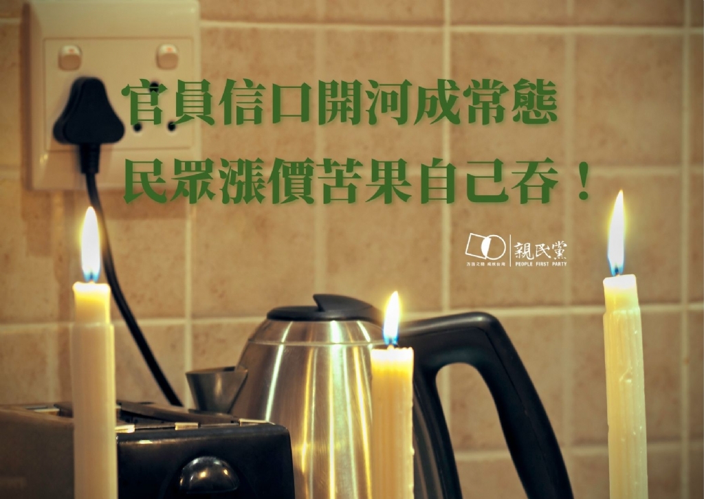 面對台灣能源危機近在眼前,經濟部長王美花除了硬凹外,依然束手無策,最後只能搬出「台電不能倒」說詞。繼去年宣布電價調漲8%後,又再度宣布自今年4月起調漲電價,平均漲幅11%,產業用電大戶則調漲17%。儘管政府宣稱住宅700度以下凍漲,但產業接連高漲的電費成本,終究還是會轉嫁到一般消費者身上。蔡總統在2015年曾經宣示「10年不漲電價、不會缺電」,後又改口是「不會大漲」。宋主席常常說:「人民的小事,就是政府的大事」。不知道現在執政的官員們能不能夠體會到「政府的小漲,就是人民的大漲」!
