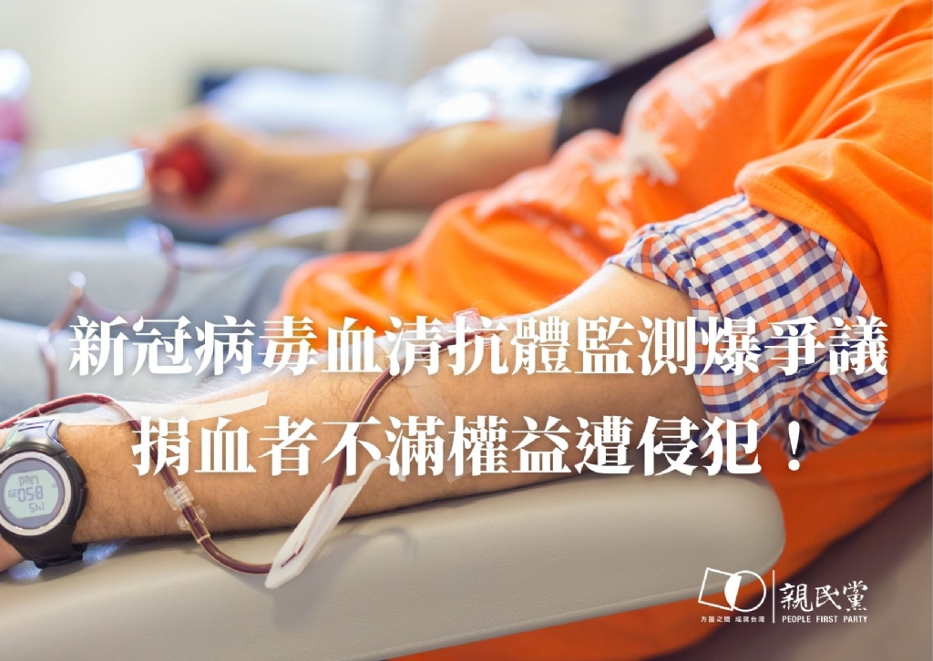 衛福部日前要求台灣血液基金會配合執行「新冠病毒血清抗體監測」計畫,但未在民眾捐血前善盡告知義務,而是在事後以電子郵件告知捐血者,血液被選中要做新冠檢測。捐血者若不願意提供檢體,還必須在收到通知後2週內,打1922防疫專線,提供「血袋號碼」或「姓名、身分證字號及生日」資料,疾管署再以電子郵件轉知血液基金會排除抽樣檢體。捐血者感覺權益受到侵犯,也有個資外洩疑慮。