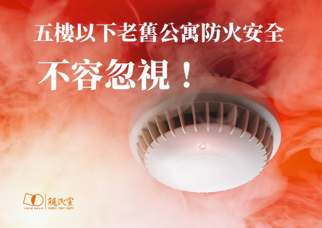 根據現行法規,我國住宿類建築物的公共安全申報,僅限於6樓以上建物,5樓以下則免申報。另據消防署統計,儘管全國住警器應裝設戶的安裝率高達97%,但仍有近22萬戶應裝卻未安裝。為補救老舊公寓消防設備不足之現況,當務之急,政府應針對5樓以下未設置消防設備的公寓盡速裝設住警器,並全面加速檢討5樓以下建物之公共安全申報規定,以保障老舊公寓防火安全。