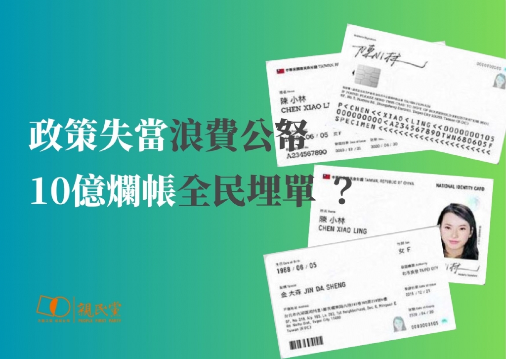 行政院「數位身分證」政策因資安爭議喊卡,廠商明確地向政府提出求償,雙方已協調多次仍破局,如果協調未果,政府賠償金額超過10億元費用將由全民埋單,坐實了當初我們在立法院的質疑。當時親民黨團不斷提醒政府,應先排除資安疑慮及個資洩漏的風險後,再行換發,並提案將預算「全數刪除」。但民進黨政府一意孤行,強行動用多數暴力表決通過預算,如今浪費大把鈔票後,還要人民來幫忙善後,把民眾納稅錢當流水花!