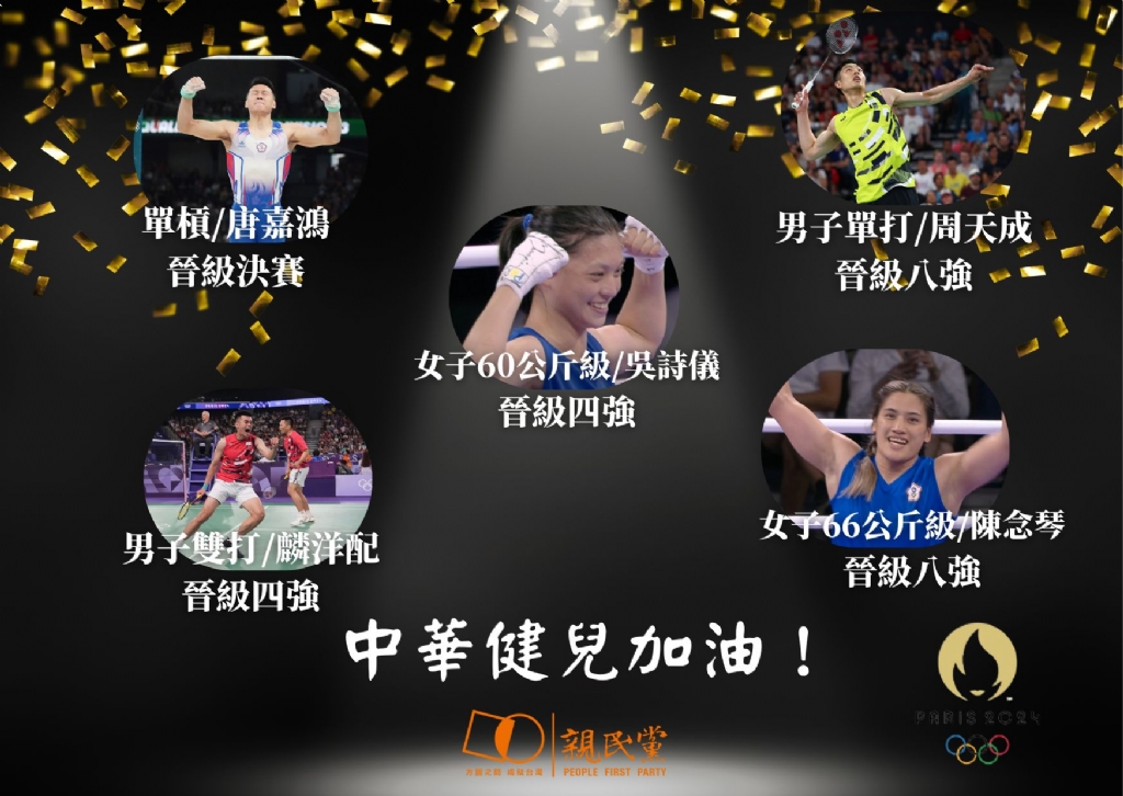 中華隊本次共有60位選手參加巴黎奧運,含蓋柔道、網球、射擊、羽球、拳擊、輕艇、桌球、體操、霹靂舞等16項競賽。每一位選手不僅是為自己拼搏、也是為台灣拚搏。勝利或失敗都只是暫時,但不放棄、堅持到底的運動精神,卻永遠令人感佩!