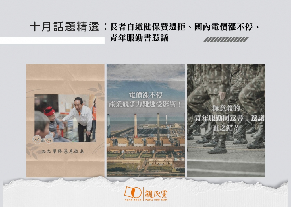 【十月話題精選:長者自繳健保費遭拒、國內電價漲不停、青年服勤書惹議】