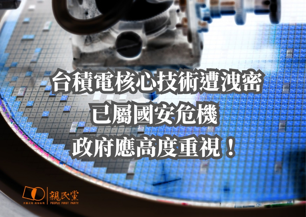 【台積電核心技術遭洩密已屬國安危機 政府應高度重視!】