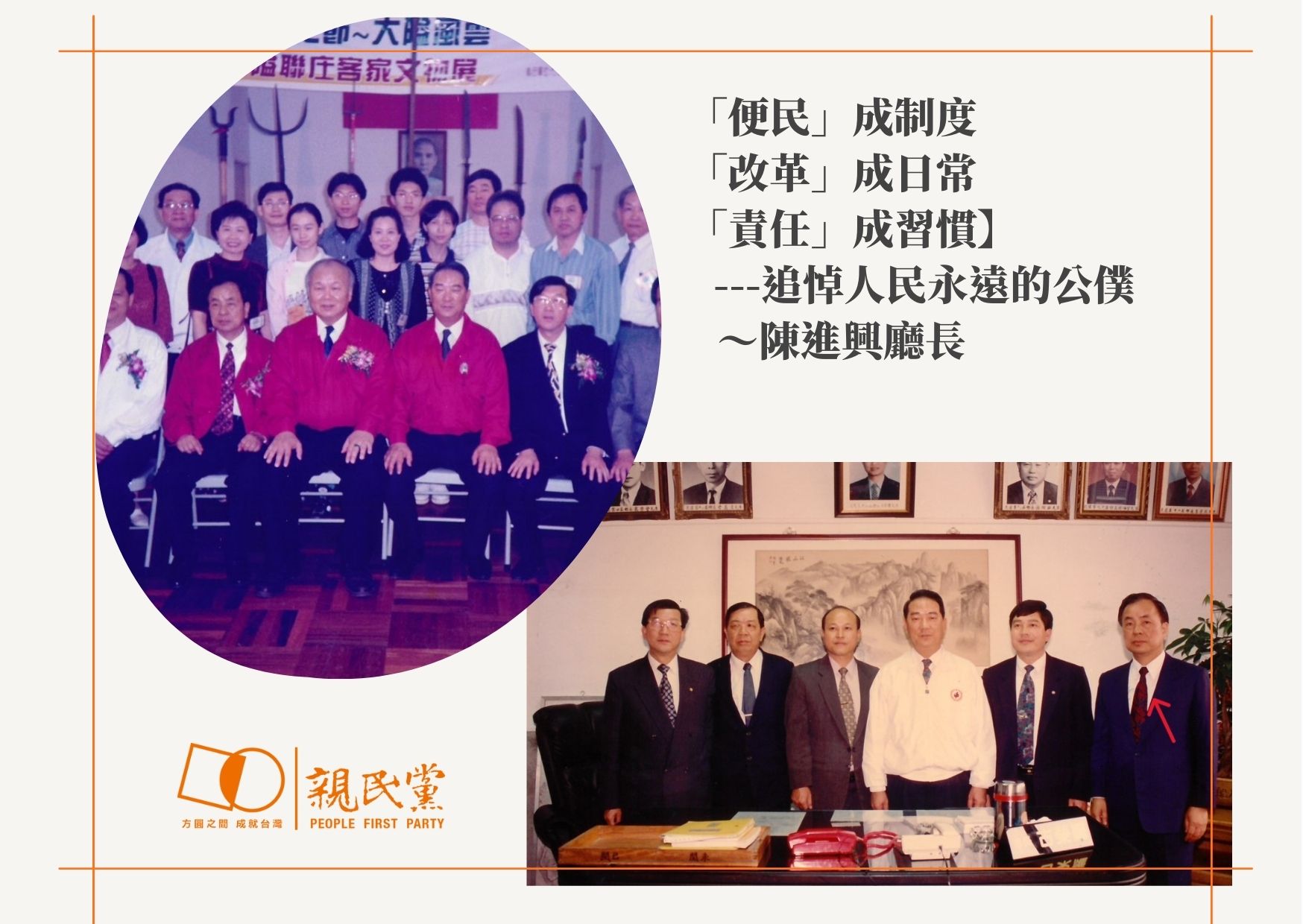 驚聞我在省府的工作夥伴民政廳陳進興廳長辭世噩耗,一時難以言語。多年來的互動情境在腦海不斷翻湧,回想起與他一同在臺灣省政府所進行各項制度性改革,譬如說戶政簡化流程與系統化的工作,就是我們替無數鄉親省下時間、腳程與等待的焦慮,也讓政府服務真正落實「以人為本」的精神。