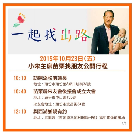 > 2015-10-23 10月23日小宋主席苗栗找朋友公開行程