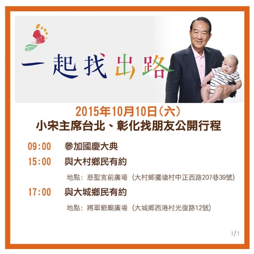 > 2015-10-09 10月10日(六)小宋主席台北、彰化找朋友公開行程