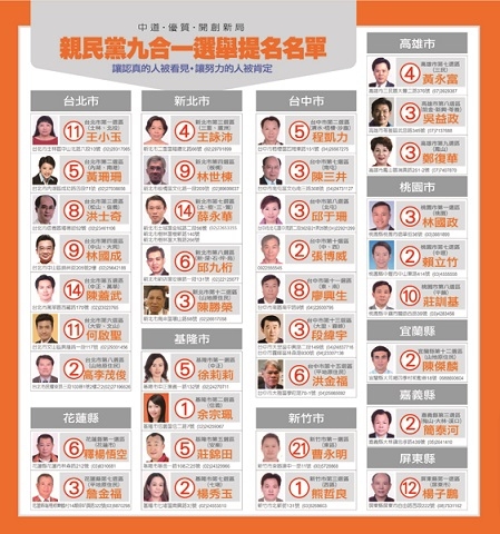 各位好朋友,親民黨在這次九合一地方選舉中,推出了36位縣市議員候選人,目標就是在各縣市成立黨團(3席議員),以便有足夠的力量監督政府,提出具體改革議案,讓台灣政治從基層開始改變,讓人民的力量推開非藍即綠的魔咒,讓政府施政更切合人民的需要。