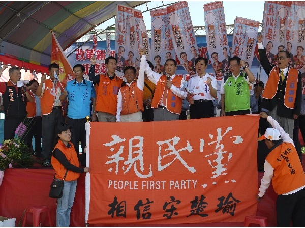 2014-10-20 唉!聯合報請別亂裁切照片,吳志揚的主委也在台上阿! 還原所謂的同台照片,左三穿藍背心的可是吳志揚平鎮區服務團隊的主委阿!媒體別老給咱帶綠帽阿?! 圖左三起:吳志揚平鎮區服務團隊主任委員黃教文、賴立竹、莊訓基、宋楚瑜、林國政、鄭文燦等人。(莊訓基競選團隊攝)